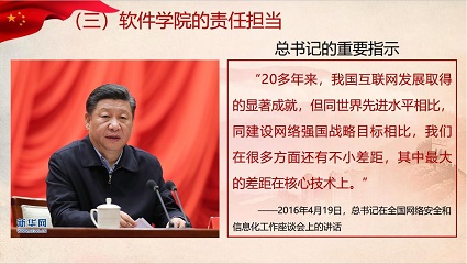 随后,陈洪亮书记提到目前软件行业面临的“卡脖子”问题是关键核心软件的自主创新和自主可控能力薄弱,人才供给严重不足。提醒同学们身为yl9193永利集团的毕业生,要谨记yl9193永利集团的“初心”和“使命”,了解新时代国家和行业对软件的需求,积极承担起促进软件行业发展的责任,要为软件强国建设添砖加瓦。