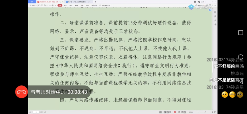 在线教学第一天,全体学工干部积极主动“进网络”、“进课堂”、“进学生”,全面了解学生线上学习和老师线上教学状态,第一时间掌握课堂信息,记录在上课过程中存在的问题,全面做好疫情防控期间学生线上教学相关保障工作。通过对《计算机网络》、《软件工程文档写作》、《数据库系统》、《大学英语(Ⅱ)》等课程的线上教学情况的深入了解,收集师生反馈意见,绝大多数课程运行状态良好,网络通畅、声音清晰、学生到课率高、师生互动较好,学生对在线课堂的氛围和效果比较满意。
