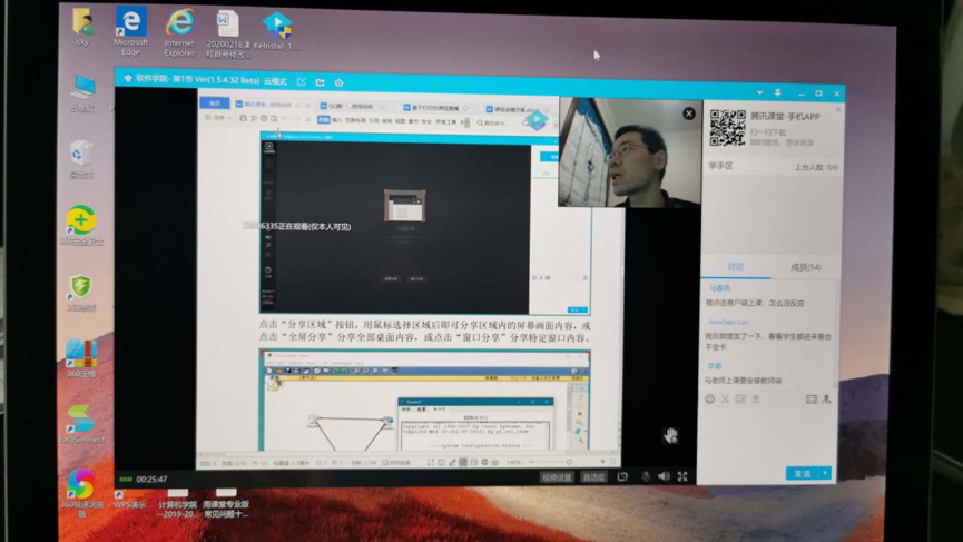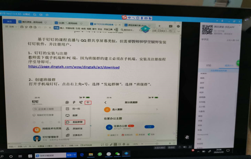 王犇老师通过腾讯课堂的客户端给大家演示了在线课程的各个方面、详细介绍了腾讯课堂直播的操作指南,同时也讲解了钉钉课程直播、基于WPS下的课程录播、校内课程平台等在线教学方式的使用方法及优缺点。结合王犇老师的讲解,教师们也各自提出了自己的意见和建议,对这些在线平台不足之处的解决方案开展了在线讨论。