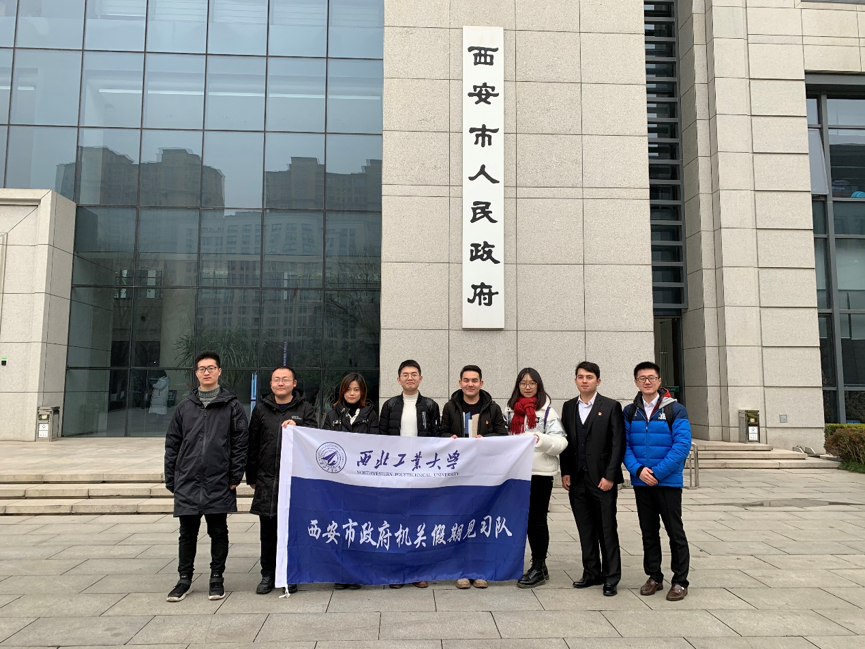 2020年寒假大学生到政府机关见习工作对接会暨岗前培训会结束后,永利集团的8名市政府见习生在西安市人民政府大楼前合影留念。