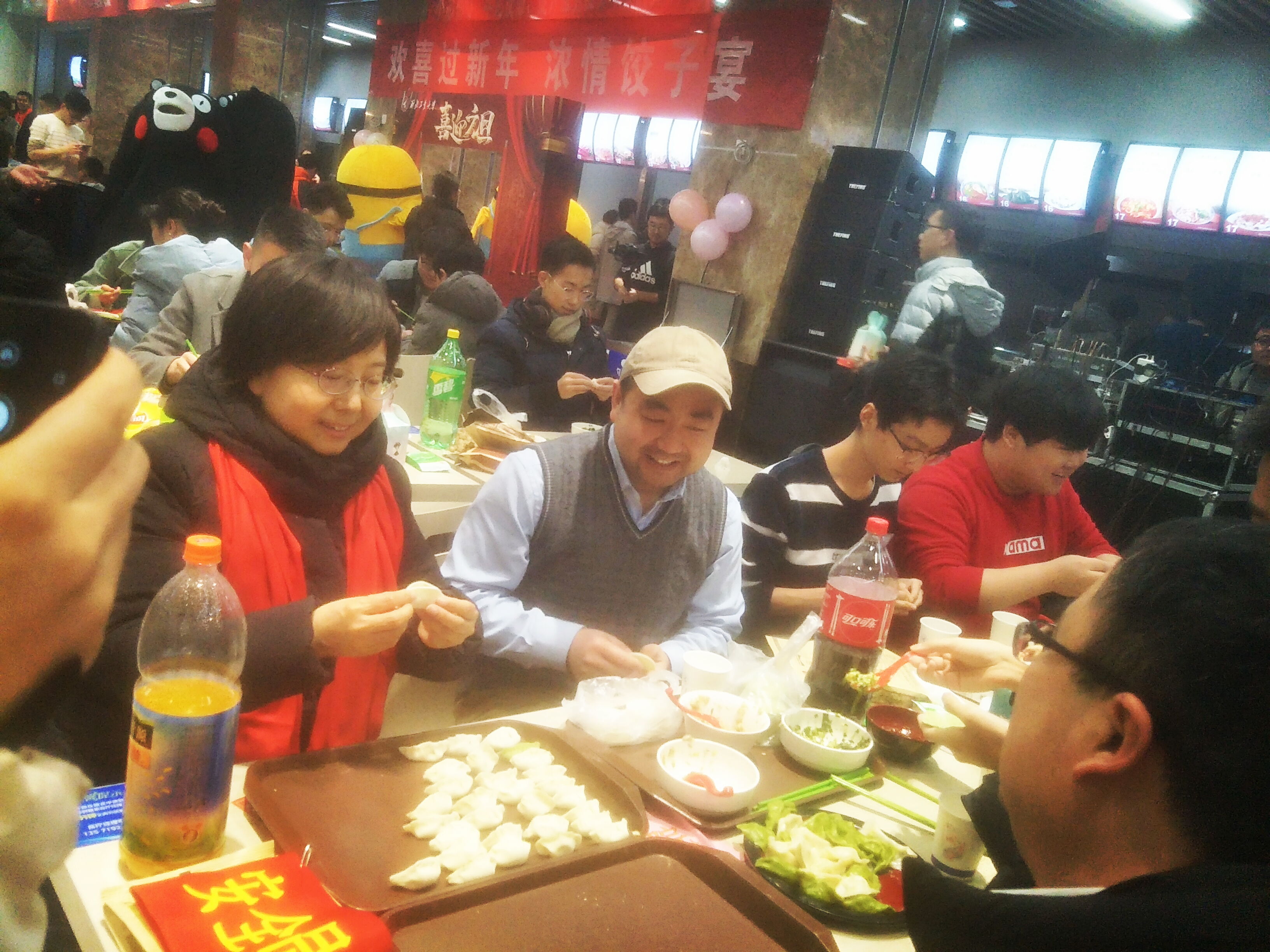 下午四点左右的学生第一餐厅已是人山人海,人满为患。学生们在安全员的引导下早早地进入餐厅,感受新年氛围,着手包饺子。随后张艳宁、陈洪亮、郑江滨、王犇、黎昞、齐春晓老师先后加入包饺子队伍。在这拥挤的食堂中,来自不同学院,不同民族乃至不同国家的老师和同学们各自展现着其包饺子的工艺, 此时此刻,老师与同学们之间的距离再次拉近,欢声笑语,在热闹的气氛中感受着节日带来的快乐。