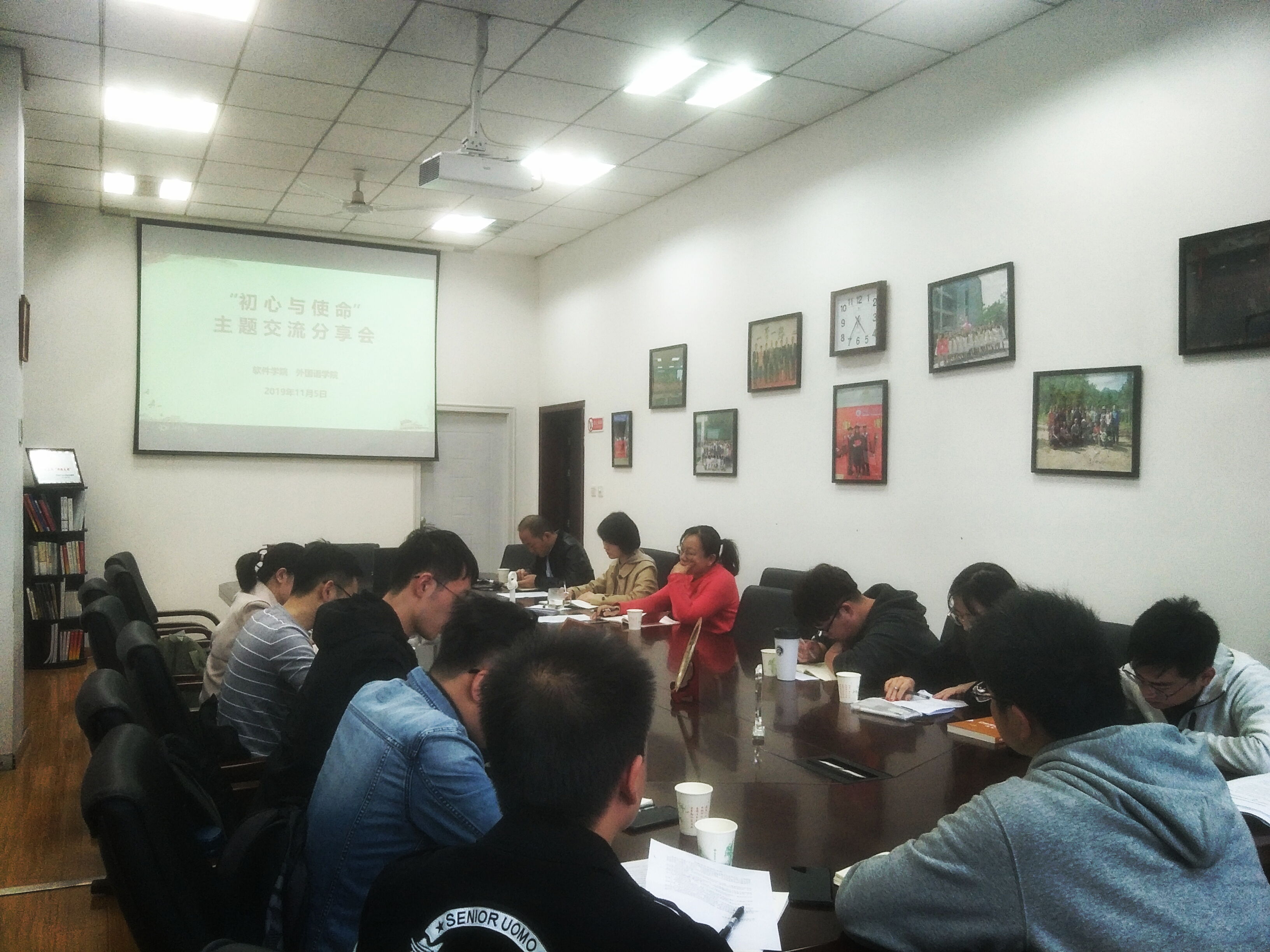 2019年11月5日,“初心与使命”主题交流分享在外国语学院会议室219召开。此次交流会由yl9193永利集团与外国语学院共同举办,yl9193永利集团党委副书记张琨,外国语学院党委副书记高敏,辅导员赵青、齐春晓、以及两个学院10余名党支部书记参加此次交流会。大会由赵青老师主持。