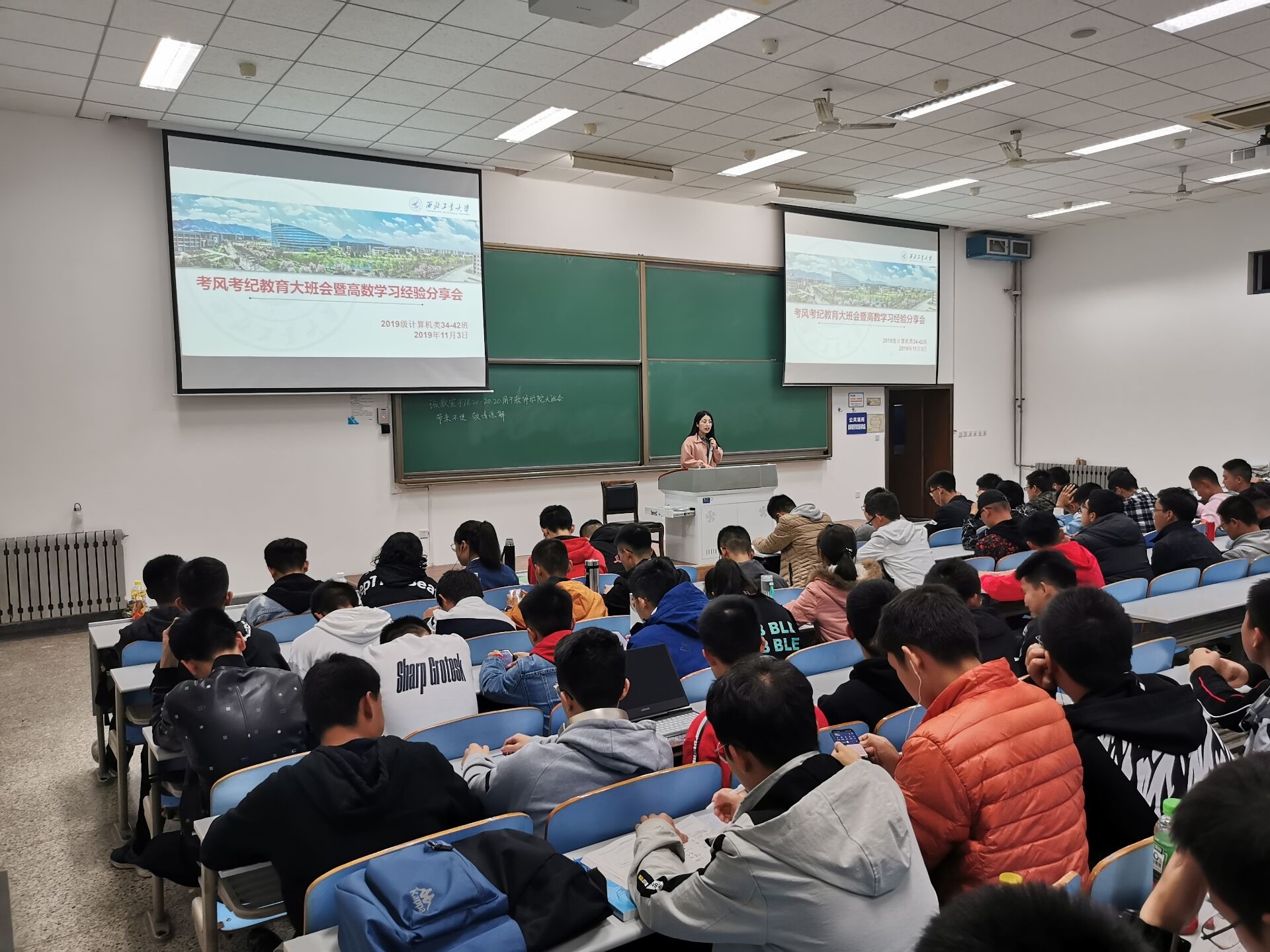 2019年11月3日18:20,yl9193永利集团考风考纪教育大班会暨高数学习经验分享会在教西D105举行,此次会议请到了两位yl9193永利集团18级高数成绩满分的同学何畅浩和黄仲臻,出席此次会议的还有辅导员李祖鑫以及2019级计算机类34-42班全体同学。