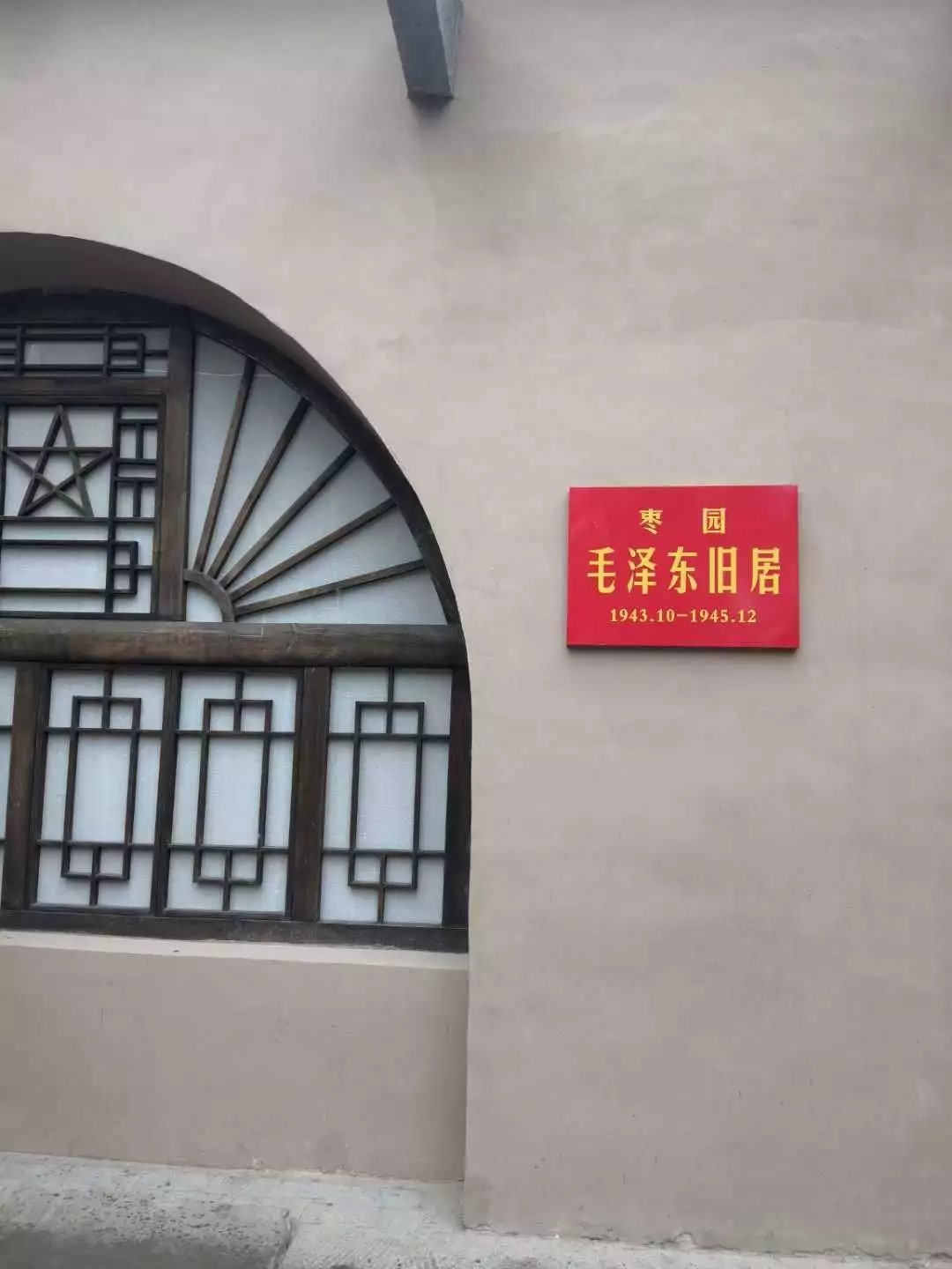 抵达枣园的时候,细雨暂时停歇。首先映入眼帘的是一块刻有"枣园"二字的大石,红色的草书遒劲有力,顿挫抑扬。