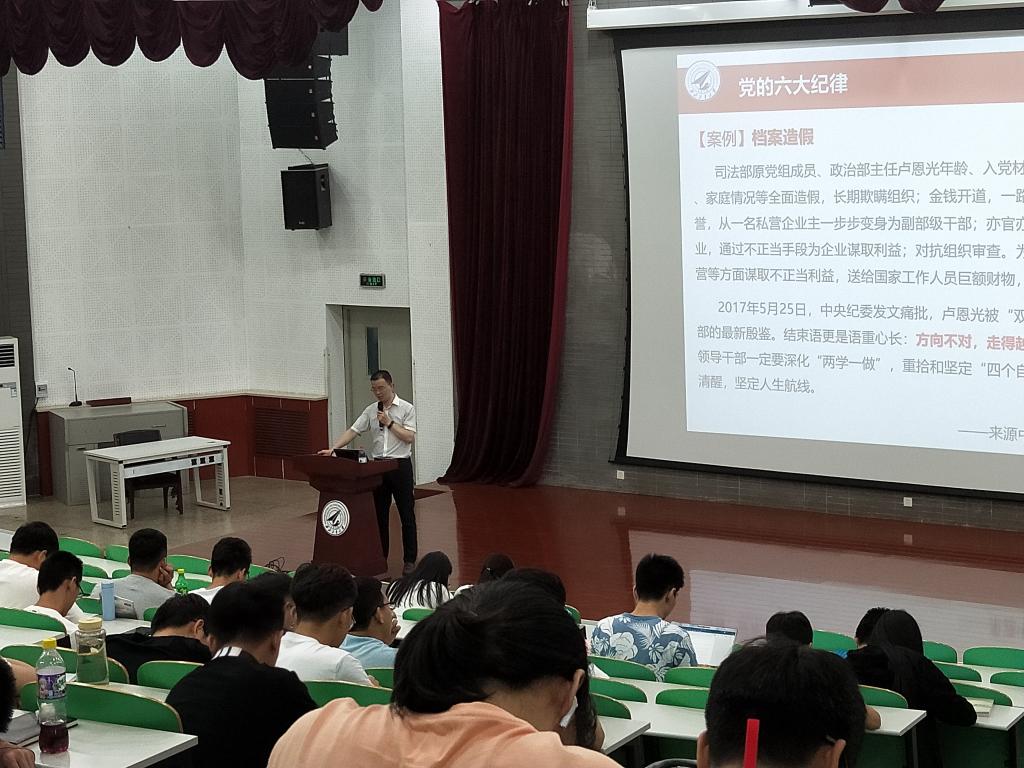 首先,李老师从习近平总书记在北京大学勉励青年“人生的扣子从一开始就要扣好”为题展开,为同学们讲解了《中国共产党廉洁自律准则》《中国共产党纪律处分条例》等内容,从正面引导和纪律约束双向发力,着重讲解了党的六大纪律,列举了大量实际案例,深入浅出,使同学们更真切的领会纪律要义,理解党的六大纪律,一定要做到预防为先、挺纪在前。