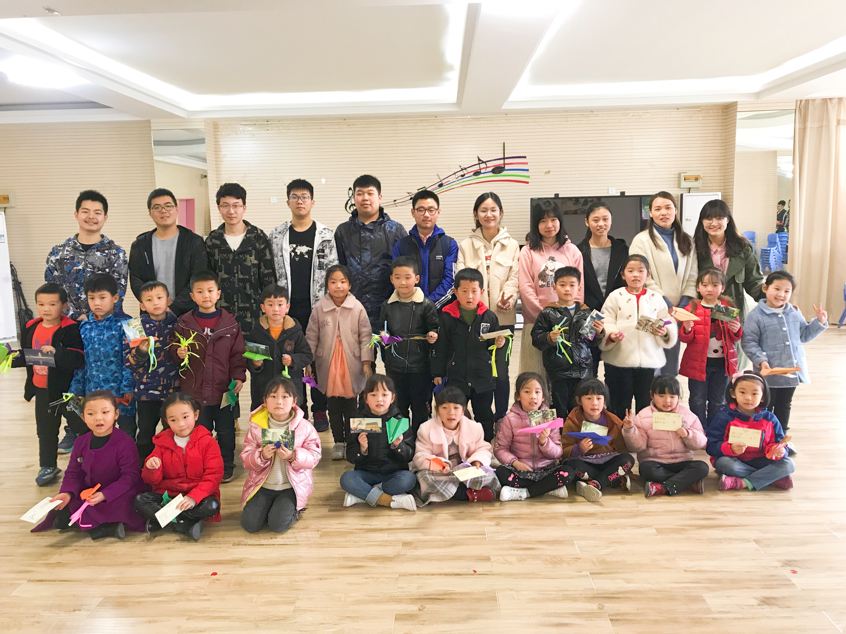上午10:00我们准时到达了幼儿园,紧张的等待着孩子们的到来,第一眼见孩子们没有想象中的吵闹,非常有秩序的排成两列。负责给小朋友们讲故事的范高铭哥哥问大家知不知道雷锋叔叔啊,小朋友们你看看我,我看看你。“我们准备了小礼物给勇敢回答问题的小朋友哦”,这时候,大家迫不及待地举起自己的小手,争相回答。只有一个小女孩,窃窃的和旁边的小姑娘私语“我妈妈什么都没教过我,就我什么都不知道”,“不知道也不要紧哒,等哥哥讲完大家就更了解雷锋叔叔啦”!“有没有人知道洪水是什么呀”“洪水就是,就是很大的水,像水龙头一样”,真的被孩子们的天真打败了。之后邓程诺教小朋友们唱《学习雷锋好榜样》,其实说唱歌不如说是在歇斯底里的喊,孩子的世界总是那么的简单,他们觉得唱的越大声就越好听,你唱的大声我就要更大声,于是,孩子们稚嫩的声音在教室里回荡。到了折纸环节,给孩子们发卡纸可真是个“困难”的活儿,当你问“有没有人想要粉色的卡纸呀”几乎你附近的都有孩子都说“我要粉色的,我要粉色的,我要......”,当你问“有没有人想要绿色的卡纸呀”孩子们又都说“我要绿的,我要绿的,我要......”好吧,还得老师出手,孩子们才乖乖的领分到的卡纸,不再纠结他的颜色。