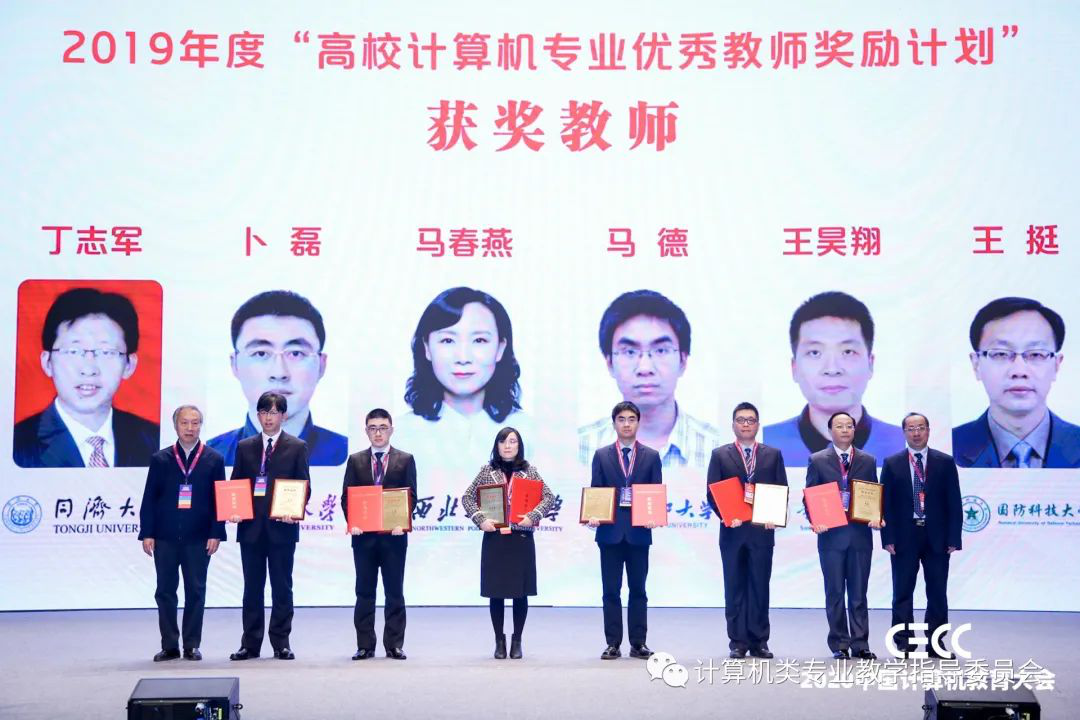 马春燕作为2019年度高校计算机专业优秀教师奖励计划获奖教师参加颁奖典礼,该奖励计划经过了近一年的评审,在全国50多所高校中遴选出54位老师作为获奖者。