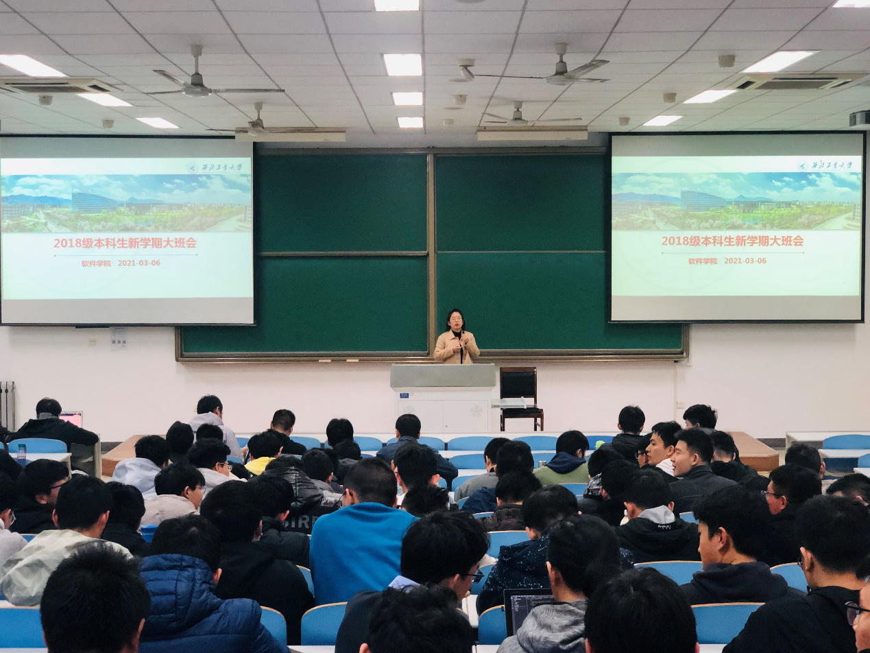 紧接着,齐老师向同学们说明了本学年的大致工作安排。本学年对于2018级同学们来说至关重要,除专业课的学习外,同学们需要结合自身实际确定目标和方向,合理安排时间,为考研、保研、就业、实习和出国等做好准备。其中,4月份需注意积极分子推优和入党材料的申请和审核;5月会下发专业实习实践课内容,同学们需及时联系实习单位或实验室安排暑期实习以获得实践学分。6月除课程考试外,保研的同学需要注意夏令营的申请和参营。而9月后则会进行研究生推免、奖助学金评定、考研和毕业设计等环节,同学们都需要留心注意,合理安排好自己的时间。