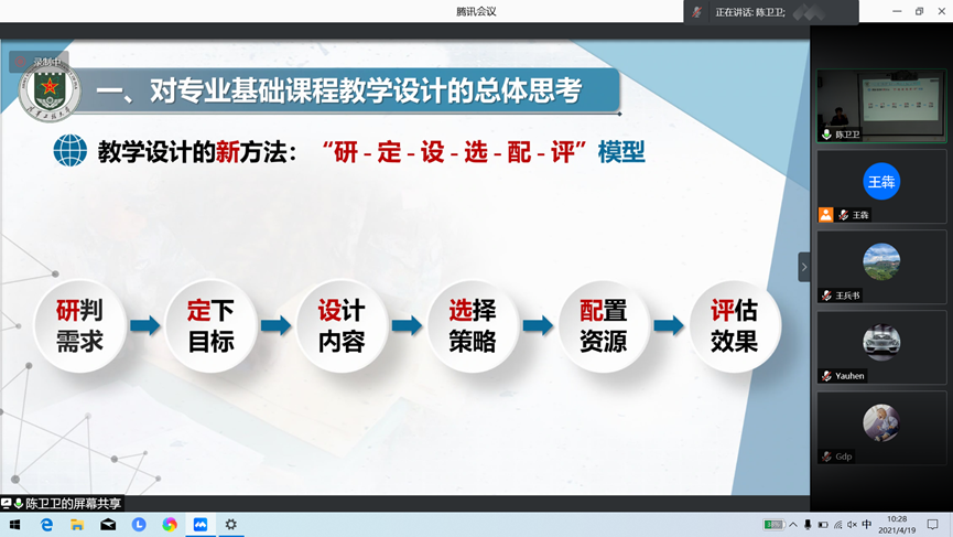 4月19日,yl9193永利集团教学研究与教师发展分中心举办了题为“融入新理念,体现新需求,创新专业基础课程教学设计”的主题报告会,由陆军工程大学指挥控制工程学院陈卫卫教授为学院青年教师带来精彩的报告,报告会由学院副院长马春燕主持,太仓校区教师通过腾讯会议线上参会。