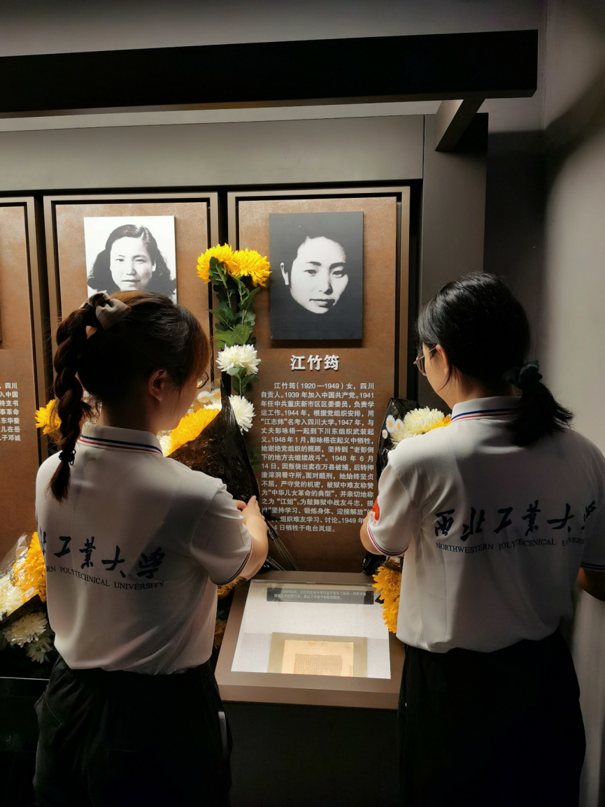 在参观渣滓洞的最后一程,队员们缅怀了以江竹筠为代表的一大批中国共产党革命烈士,在留言册中写下了团队对于革命烈士的悼念,并为革命先辈奉上鲜花。