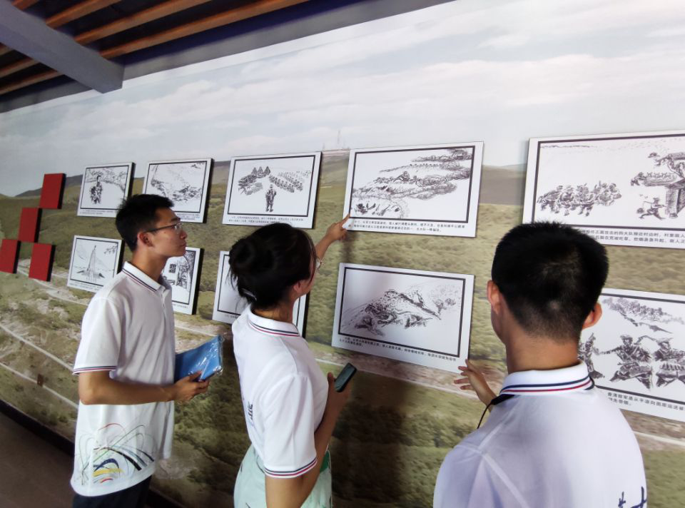 瞻仰过战斗纪念碑,一行人随着丁红武老前辈来到了红军长征青石嘴战斗纪念馆,在馆内参观了红军长征在宁夏境内行经地区的地形模型,并观看了长征故事连环画。随后,队员们对丁红武前辈进行了采访。丁红武前辈作为“青石嘴的守碑人”,数十年如一日地打扫场地的卫生,看护场地,修剪树木,清除杂草,为前来瞻仰这一红色丰碑的游客进行讲解,履行了作为一名光荣的党员应尽的责任。队员们都被丁红武前辈不辞辛劳的奉献精神所震撼。