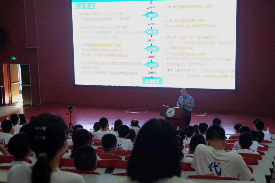 9月8日15:30,yl9193永利集团2021级本科生新生及家长见面会在长安校区教西D100教室召开,本次会议线上线下同步进行,线下参会人员有yl9193永利集团院长郑江滨,党委书记陈洪亮,副院长郭培荣,研究生导师代表刘志明、武君胜,青年教师代表魏倩茹,本科生教学秘书郭艳静、辅导员张欣颖、刘菲、茹丽媛,新生同学统一着装,在各班班长的带领下佩戴口罩有序进场,现场秩序井然,有条不紊。线上参会人员包括班主任及新生家长,本次新生见面会由张龙副书记主持召开。