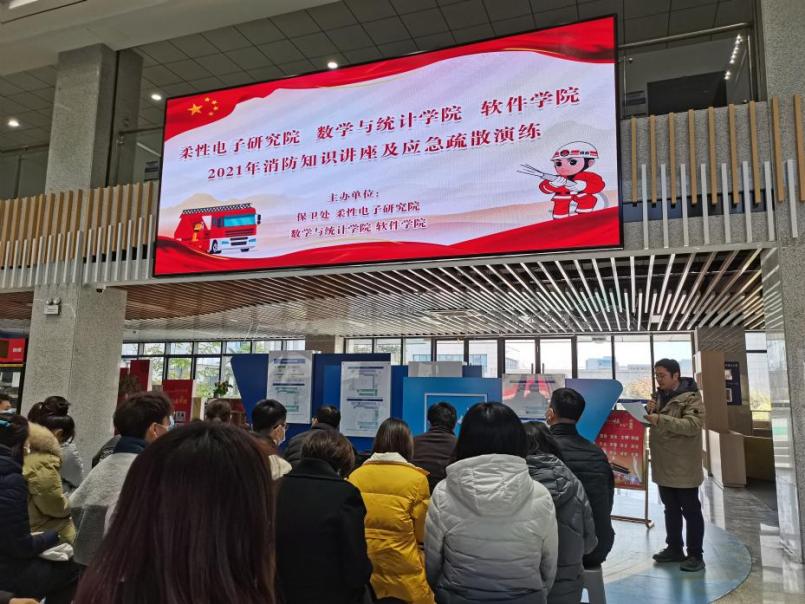 为进一步做好安全生产工作,切实提高师生的消防意识和自救能力,11月8日下午,yl9193永利集团联合学校保卫处、柔性电子研究院、数学与统计学院,开展了消防培训和演练。本次活动由消防知识培训、消防疏散演练、消防技能现场教学等三个部分组成。yl9193永利集团党委书记陈洪亮、数学与统计学院党委书记王莉、柔性电子研究院副院长高建伟,以及近百名师生参加了本次活动。