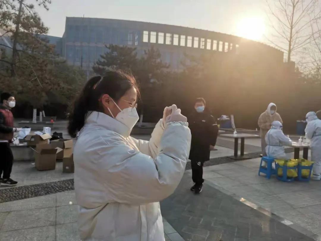 带着期待与向往,我加入了1月3日核酸检测志愿者的队伍中,我的工作主要是负责采样用品的供应以及为志愿者、医护人员拍照。天气虽严寒,但内心的激情依旧在,负我之责,承我之任,守我工大,永葆长安!