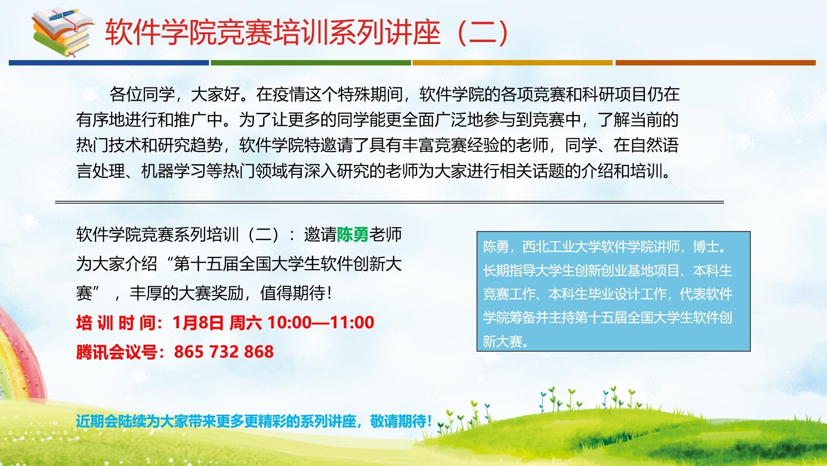yl9193永利集团竞赛系列培训(二)︰1月8日周六10:00—11:00,学院邀请陈勇老师为大家介绍“第十五届全国大学生软件创新大赛”,丰厚的大赛奖励,值得期待!