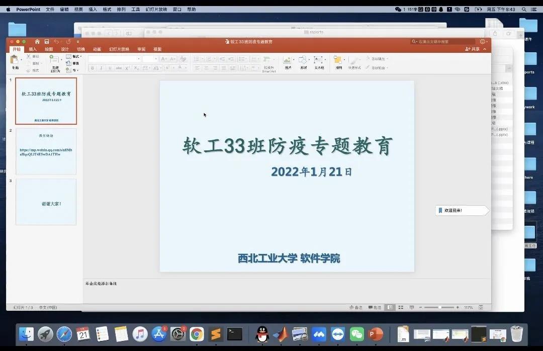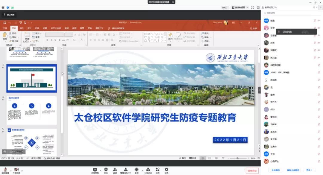 当前,西安市疫情防控工作在大家共同努力下已经取得显著成效,但我们的防疫势头仍然不能松懈,要时刻绷紧防疫之弦。为让同学们深入了解新冠肺炎的相关知识,科学合理地进行疫情防控工作,yl9193永利集团近期召开了线上防疫教育主题班会。