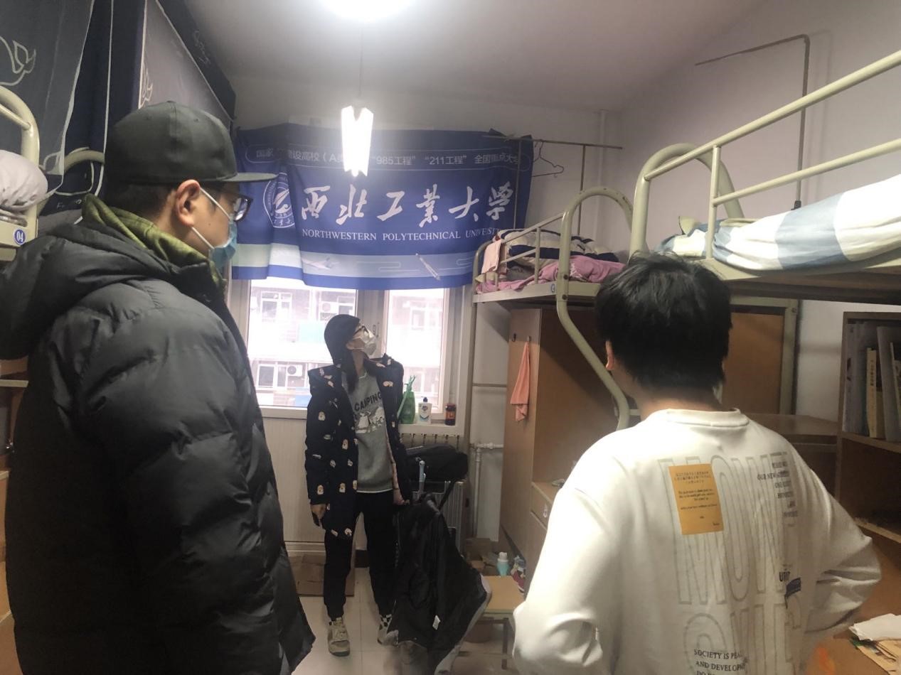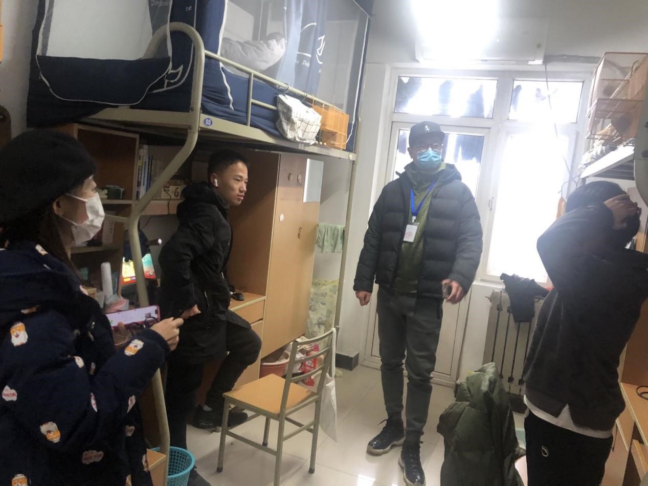 “同学们在校期间要遵循学校相关管理规定,继续做好日常防护措施,按要求做好疫情每日填报,有困难及时联系值班老师和学生负责人,学院将竭尽全力做好留校学生的保障工作。”在学生宿舍走访过程中,张龙多次询问留校生在寒假留校期间的打算,关心他们假期在校的生活、工作、学习情况和需求,并送去了学院对留校学生的关怀。张龙希望大家能够努力学习,珍惜寒假宝贵的独处时间,合理安排学业计划,潜心学习;叮嘱大家要充分认识到疫情防控的重要性,注意自身安全防护,坚持运动的生活习惯;提示大家要与父母保持联系,随时反馈在校生活情况,让家人放心。