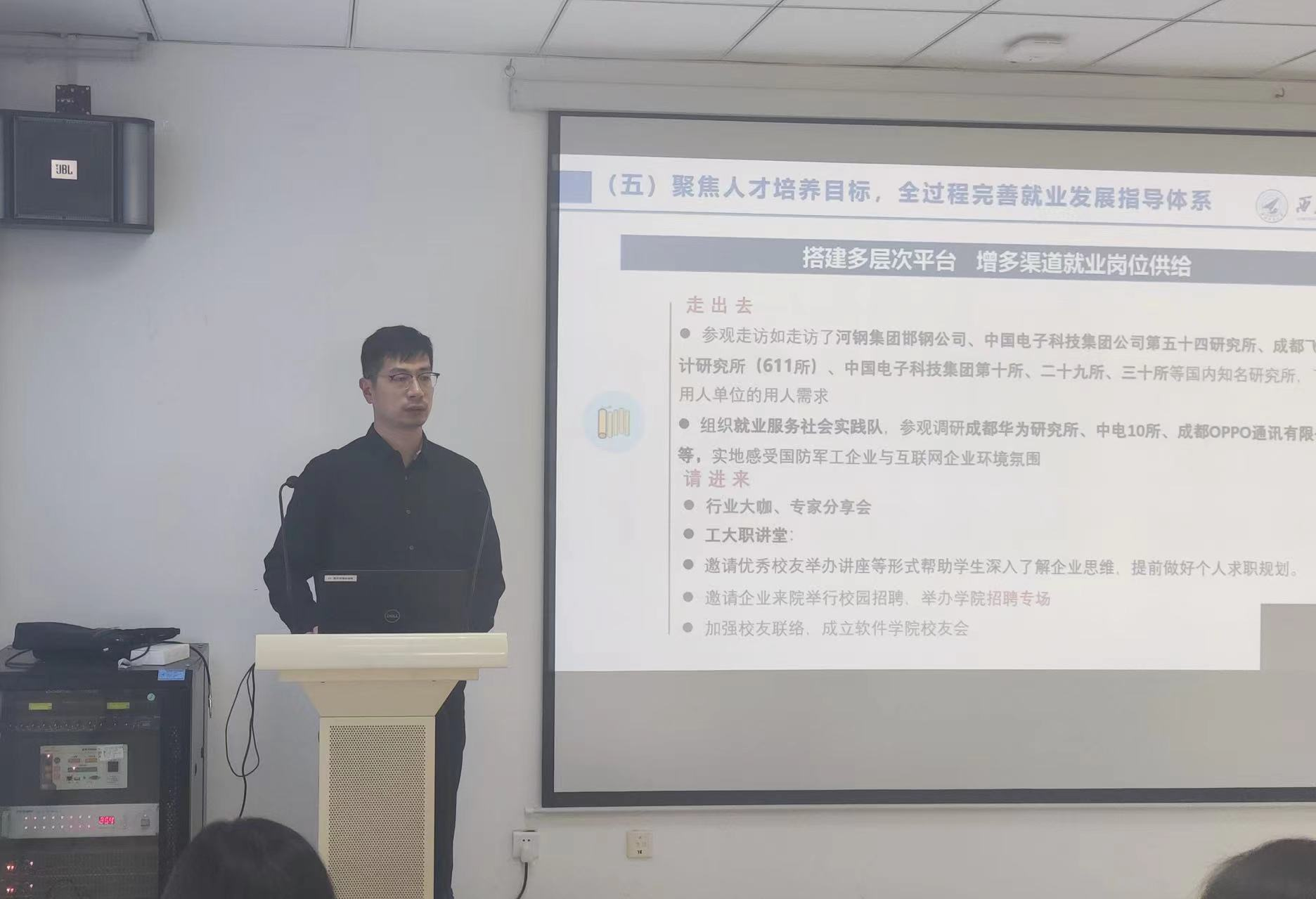 首先张龙开展以“聚领军报国之力,铸软件强国之魂”为主题的学生工作进行汇报,指出学生工作要注重党建领航、思政铸魂,不断深化学生思想动态调研机制,强化工作之间的培训交流;要通过构建阳光心理成长体系,提升育新育德育人水平,形成平台保障、教育教学、实践活动、咨询服务、预防干预为主的“五位一体”工作格局。