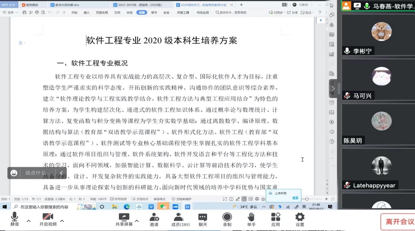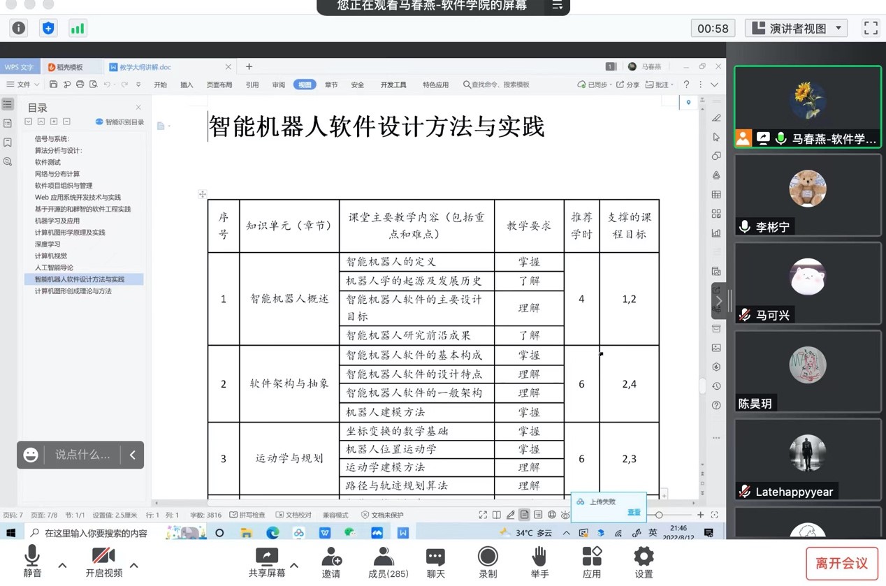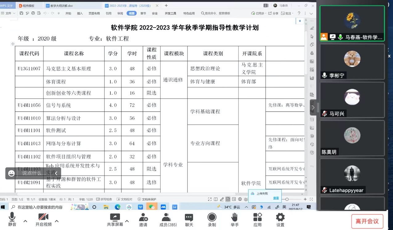 为进一步加强本科生对专业及其培养目标的了解和掌握,增加专业了解度、提升专业兴趣感、增强专业认同感。结合本学期选课相关工作,2022年8月12日晚上,yl9193永利集团通过线上腾讯会议平台,召开本科生选课指导会,该会议由学院教学副院长马春燕老师主持并讲解。2020级全体本科生、本科教学办公室管理教师、2020级辅导员及班主任等265人参会。