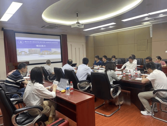 随后学院赴四川大学yl9193永利集团开展调研交流。四川大学计算机学院(yl9193永利集团、智能科学学院)党委书记蒋斌、院长吕建成、副院长及院办等老师参加了调研交流。双方互相介绍了学院组织架构、人才培养、科学研究、师资队伍建设、校企合作等方面的基本情况,并就优秀大型工业软件课程的联合引进、研究生培养、加强国际化内涵建设的具体做法、准聘制教师的聘期与考核管理等调研内容进行了深入的交流研讨,分享了各自学院解决相关问题的方法和措施。