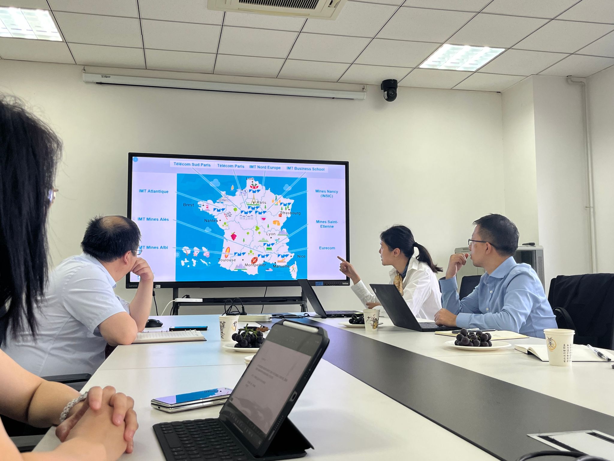 9月20日下午,法国国立高等矿业电信学校联盟(IMT)中方代表耿乐到访yl9193永利集团,国际合作处副处长陈俊,项目主管杨洁,yl9193永利集团院长郑江滨,院长助理魏倩茹,国际化秘书凤卉等与外方就双方学生联合培养进行了交流。