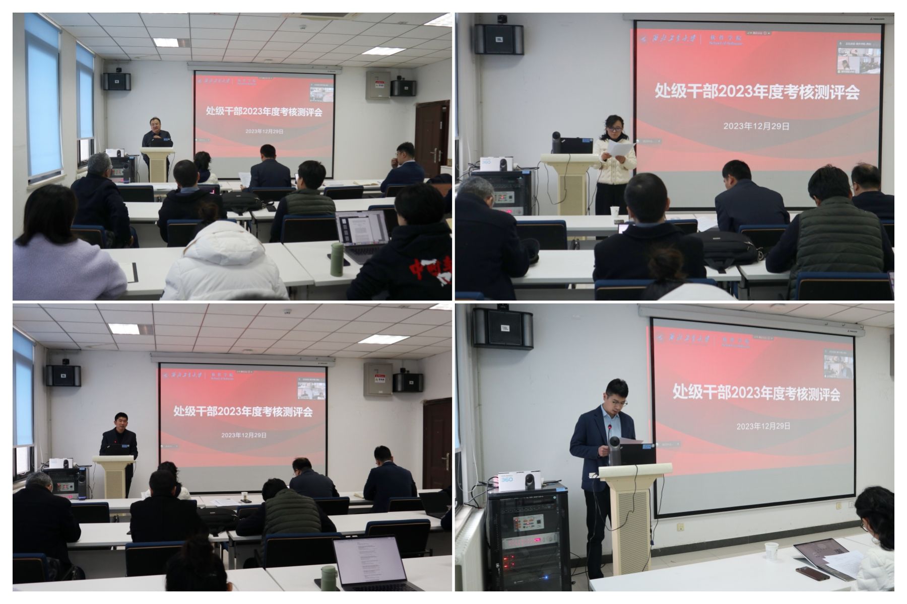李晗首先向参会人员说明处级干部2023年度考核测评的相关要求,随后院长郑江滨、党委书记李晗、副院长马春燕、党委副书记张龙分别就各自工作情况展开述职。围绕学习贯彻落实习近平新时代中国特色社会主义思想的情况、党风廉政建设、领导班子工作实绩和领导干部担当作为情况、落实学校“127”目标举措及“总师型”人才培养等方面,总结说明2023年度主要工作和工作成效。述职结束后,参会人员现场填写测评票,对领导班子及班子成员进行民主测评。