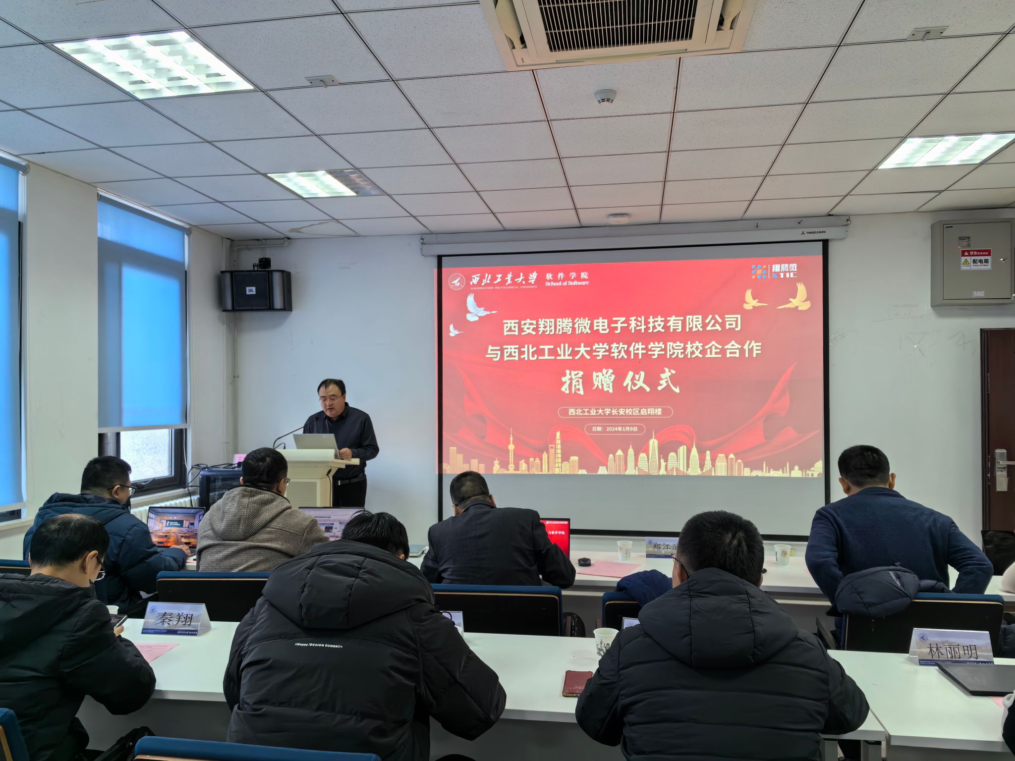 为贯彻学校“总师育人文化”,进一步深化校企合作,促进双方技术交流与人才培养,2024年1月9日上午,西安翔腾微电子科技有限公司与yl9193永利集团举办校企合作捐赠仪式。航空工业首席技术专家、西安翔腾微电子科技有限公司总经理田泽,yl9193永利集团院长郑江滨、党委书记李晗出席仪式,校企合作专项班36名学生参加会议,会议由郑江滨院长主持。