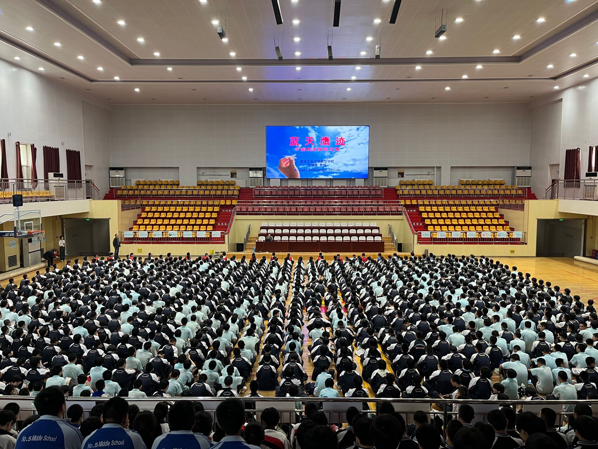 李华星教授在石家庄一中、正定中学做题为“蓝天鹰迹”的科普讲座,两场参加学子共计约1500人。教授用富有感染力的声音,讲述中国航空历史,言言入耳、句句入心,直抵灵魂深处,堪称精神盛宴。聆听时大家多次主动鼓掌,现场被点燃,几句话就能“炸”一次场。演讲结束,李华星教授立刻被孩子们层层包围,索要签名。