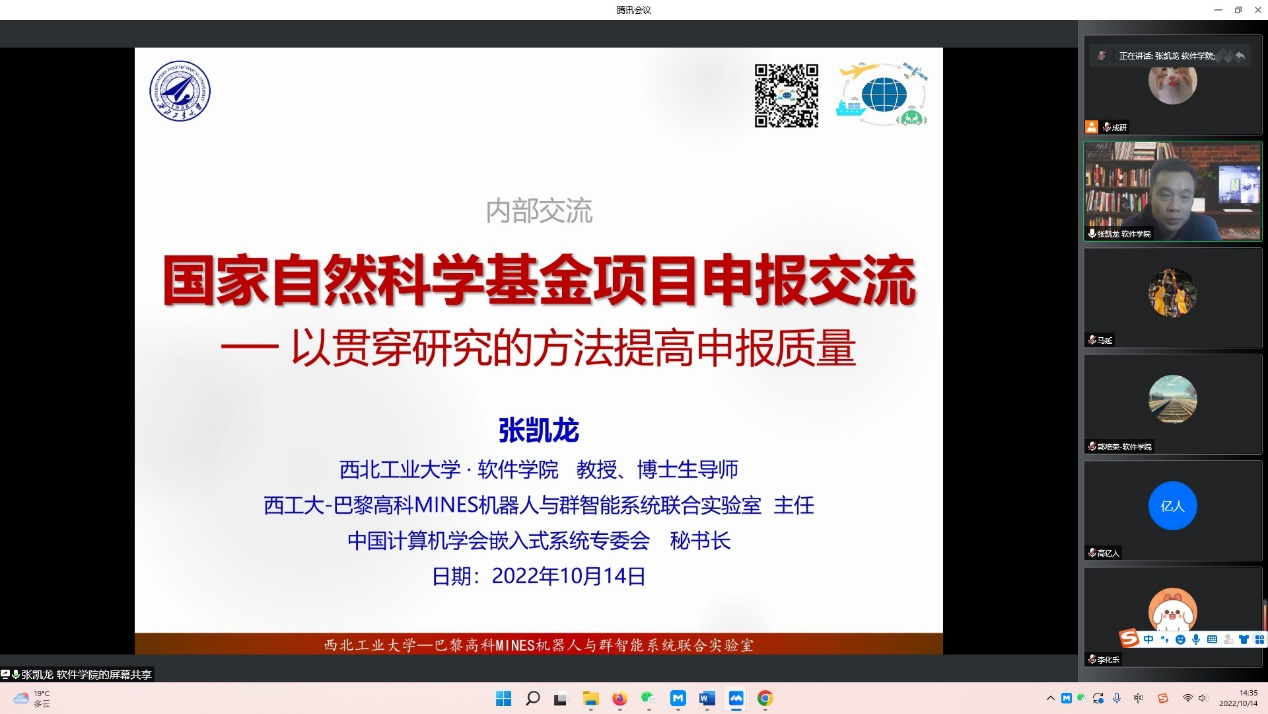 10月14日下午,yl9193永利集团组织举办了国家自然科学基金申报经验交流会,邀请学院张凯龙教授为青年教师做基金申报辅导,学院近30名青年教师通过腾讯会议进行了学习交流,会议由郭培荣副院长主持。