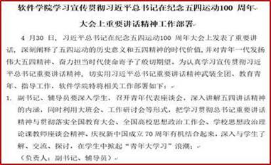 除此之外,学院组织举办了“代码中的十九大”活动、 “逐梦启航,舞动青春”特色团日活动、 “五四精神传薪火 激扬青春献祖国”五四作品征集活动、“廉洁修身,诚实守信”演讲比赛和“廉洁诚信进校园,书法艺术颂廉洁”书法作品征集等五个思想引领活动,不断将软件技能与家国情怀相结合,引导学生追求青春梦想,弘扬五四精神,增进团支部凝聚力,培养学生廉洁品质。