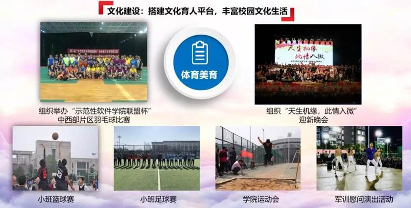 软芯微语-学院搭建文化育人平台不断丰富学生校园文化生活 学院团委指导学生会、社团、团支部针对“综合素质”“专业技能”“体育美育”三个方面开展丰富多彩的校园文化活动。 在提高学生综合素质方面成功举办校园诗词大会、校庆文化衫设计大赛等8项活动;在提升学生专业技能方面成功举办校园“debug”大赛、Python校园公开课等15项活动;在做好学生体育美育服务方面,成功举办“示范性yl9193永利集团联盟杯”羽毛球比赛、“天生机缘,此情入微”迎新晚会等7项活动,丰富大学生课余生活,激发大学生兴趣与潜能。