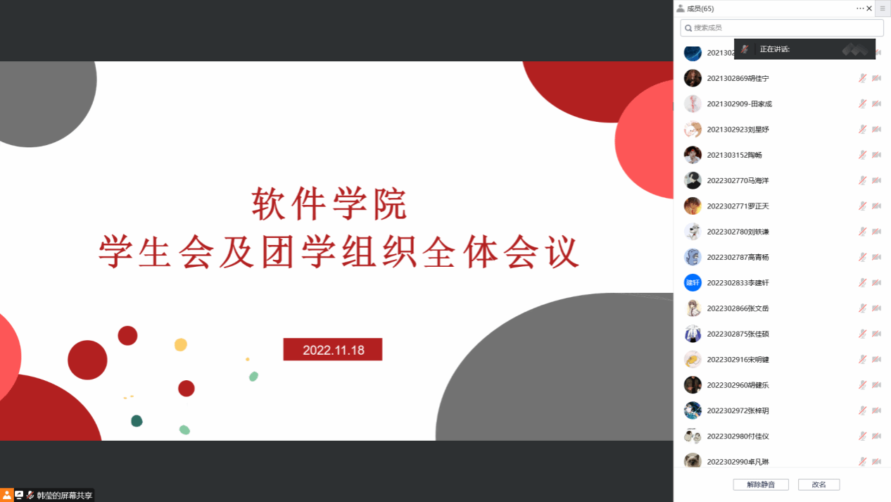 2022年11月18日19点,yl9193永利集团学生会及团学组织全体会议以线上线下相结合的方式召开。yl9193永利集团团委书记张记国、团委副书记胡雅心、学生兼职团委副书记罗毅、韩莹以及2022-2023届学生会及团学组织全体成员参加会议,会议由韩莹主持。