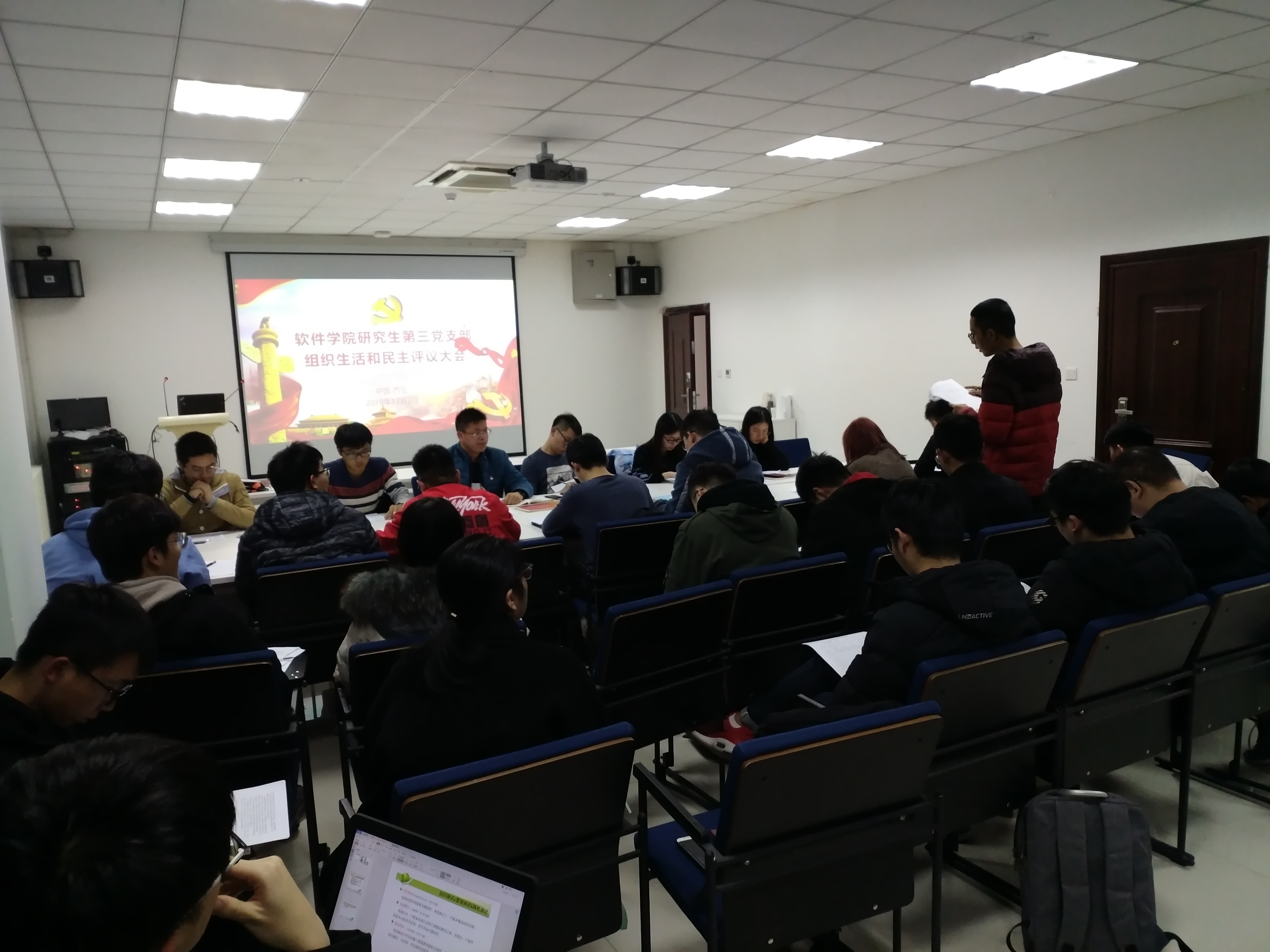 为加强对支部党员的教育、管理和监督,全面准确地了解支部同志的思想变化以及个人表现,更好促进支部战斗堡垒作用和党员先锋模范作用的发挥,根据学校学院党委安排,yl9193永利集团研究生第三党支部深入组织开展了支部委员间及与支部党员的谈心谈话,并于2019年12月2日晚在启翔楼401会议室召开了“不忘初心、牢记使命”专题组织生活会,同时开展党员民主评议工作。本次会议由支部书记胡轩豪同志主持,支部所有在校同志参加,2017级本科生辅导员陈智通老师列席会议。