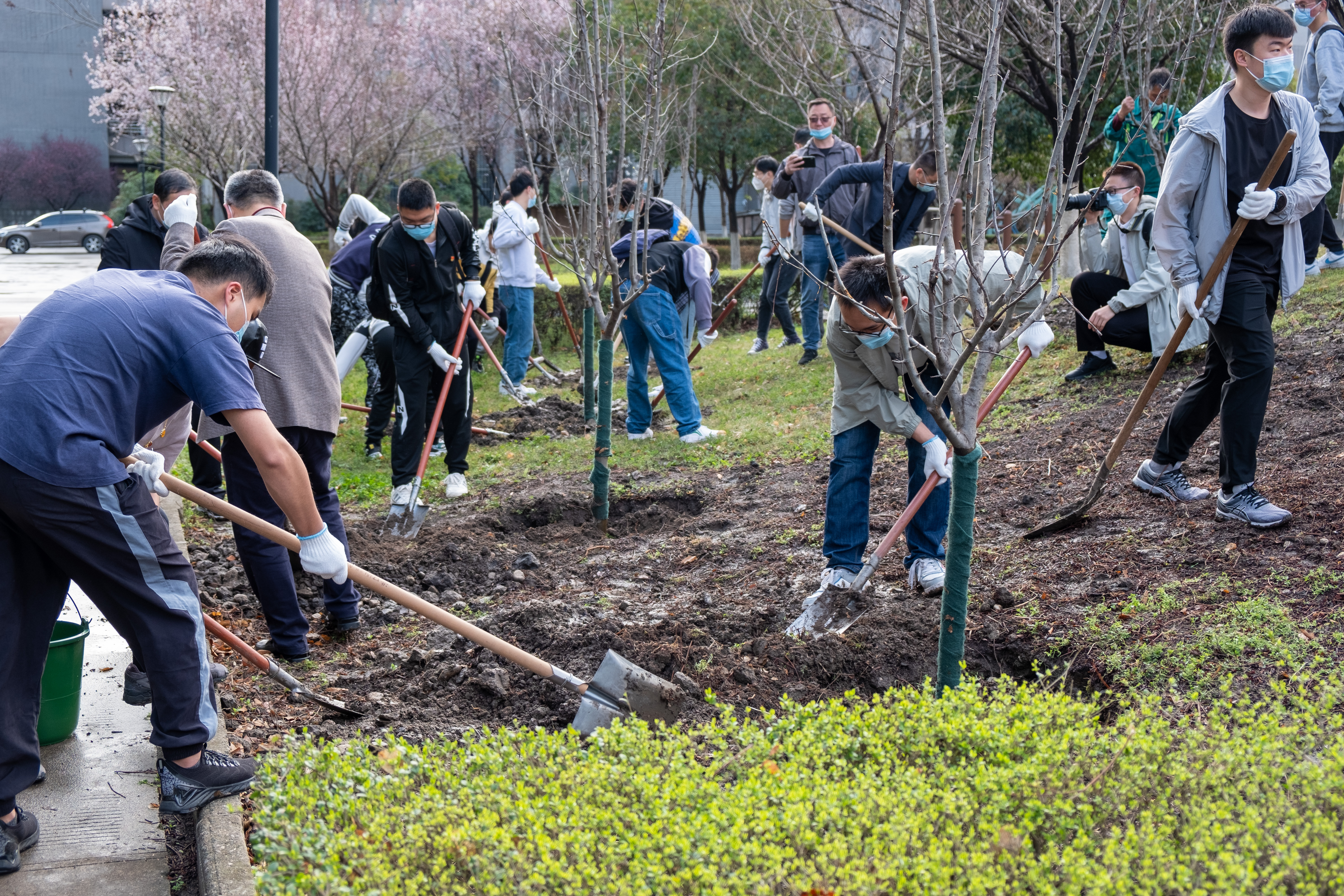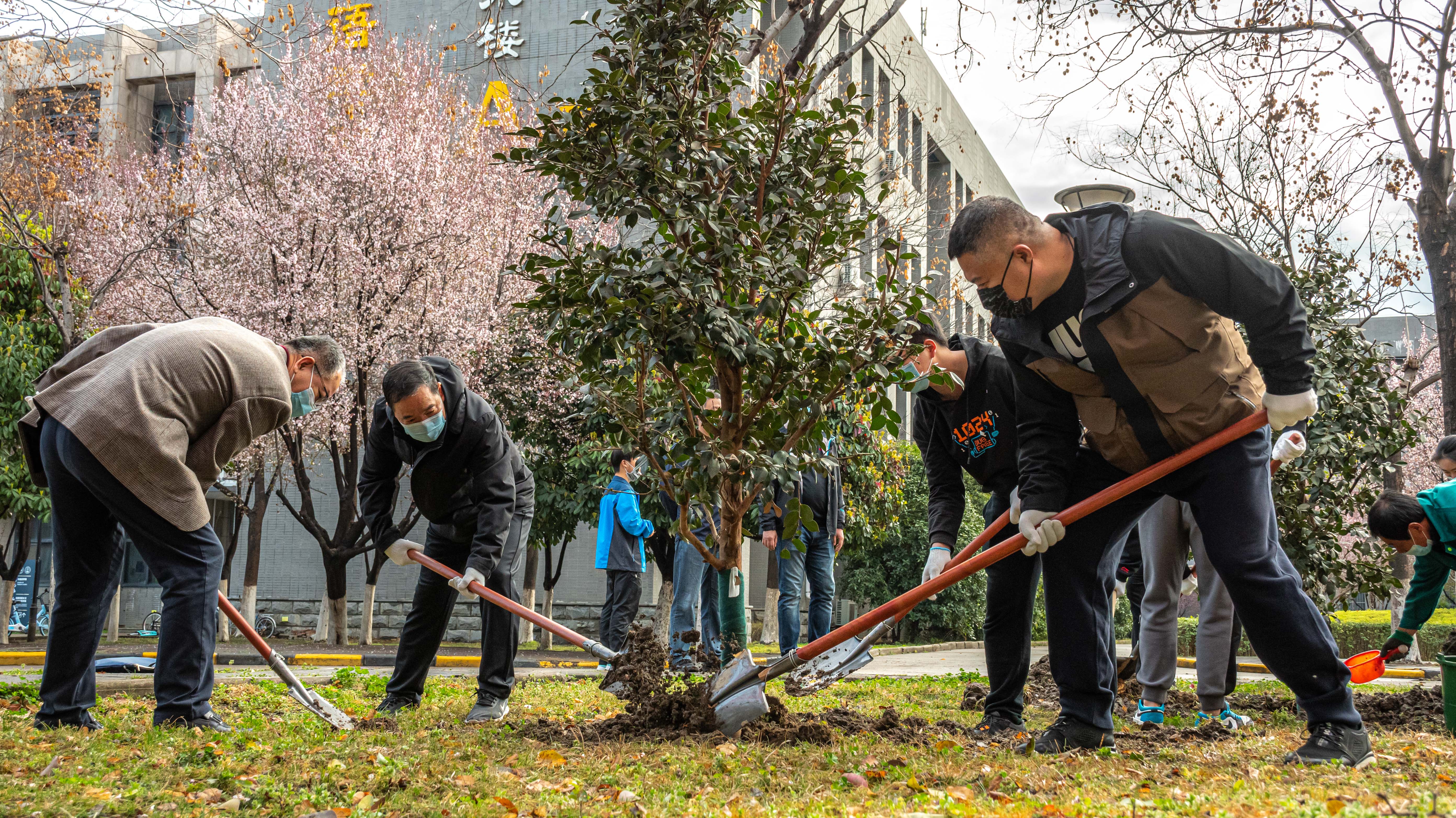上午九时,陈建有介绍了相关种植树木及保护绿植的重要意义,随后宣布活动开始。在专业植树人员的带领下,师生们在启翔湖东侧空地进行植树活动。师生们热情高涨,配合默契,纷纷挥锹铲土、扶苗填坑、平土浇水,在春日里挥洒着自己的第一滴汗水。植树工序规范认真,整个劳动场面繁忙而有序。经过一番劳动后,一棵棵新栽下的树木傲然挺立,为美丽的校园增添一份别样的绿意。