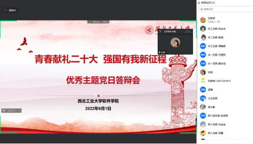 为全面加强学院学生党支部工作,增强学生党支部交流学习,进一步提升主题党日活动的吸引力和感染力,深化爱党爱国爱社会主义教育,激励广大学生以实际行动向党的二十大献礼。yl9193永利集团于6月1日晚举办了“青春献礼二十大,强国有我新征程”优秀主题党日线上答辩会,yl9193永利集团党委副书记张龙、学生事务助理杜妮出席会议,各学生党支部参加此次答辩会。会议由学生事务助理杜妮老师主持。