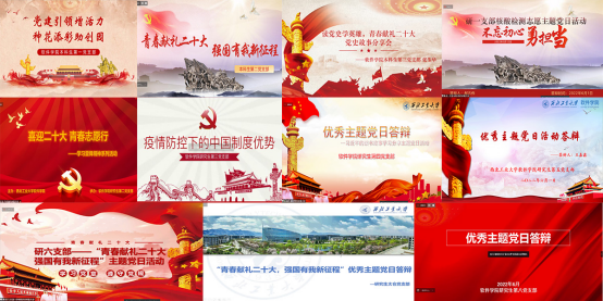 随后,各支部按照本科生支部到研究生支部的顺序依次进行答辩。大家围绕活动主题、活动内容、活动影响、活动形式等方面进行展示,各支部亮点突出,主题明确,紧扣“青春献礼二十大,强国有我新征程“主题,结合学院特色和支部特点,开展了形式多样、学生喜闻乐见、可行性强的党日活动,用青春唱响“强国复兴有我”的时代强音,积极营造了喜迎党的二十大的浓厚氛围。