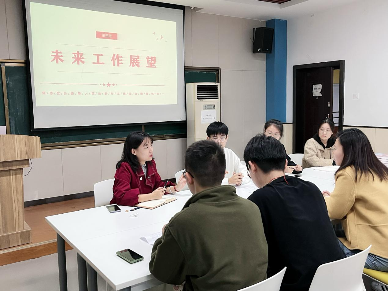 会议第三项,由两个支部各自介绍未来的工作计划,并在计划的基础上,讨论未来合作的可能性。支部书记张梦予同志与黄一哲同志介绍了支部“一院一品”的有关工作,如“管院青年说”、“礼赞党的二十大”等,张欣颖同志就技术支持与合作互助方面提出了建设性意见,希望双方将不断开展深入的合作,取长补短,共同进步!