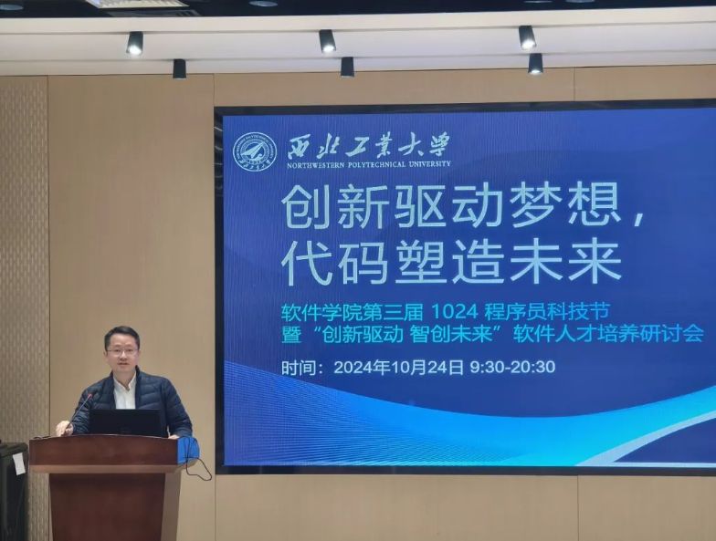 秋高气爽、丹桂飘香,为了给学校程序员同学提供更广阔的学习与交流空间,汲取科研竞赛经验,拓展国际视野,弘扬科技文化,激发创新活力,10月24日,yl9193永利集团举办第三届1024程序员科技节暨“创新驱动 智创未来”软件人才培养研讨会系列活动。本次活动由yl9193永利集团主办,并得到了学校团委的大力支持。yl9193永利集团特聘教授、原航空工业西安航空计算技术研究所副总工程师叶宏,计算机学院教授、中国国际大学生创新大赛(2024)金奖指导教师翟正军,自动化学院教授、中国国际大学生创新大赛(2024)金奖指导教师张作伟,学校团委书记佘磊磊,yl9193永利集团党委书记李晗,学校团委创新创业教育中心主任冯慧英及yl9193永利集团学生参加了会议。会议由yl9193永利集团党委副书记陈博主持。