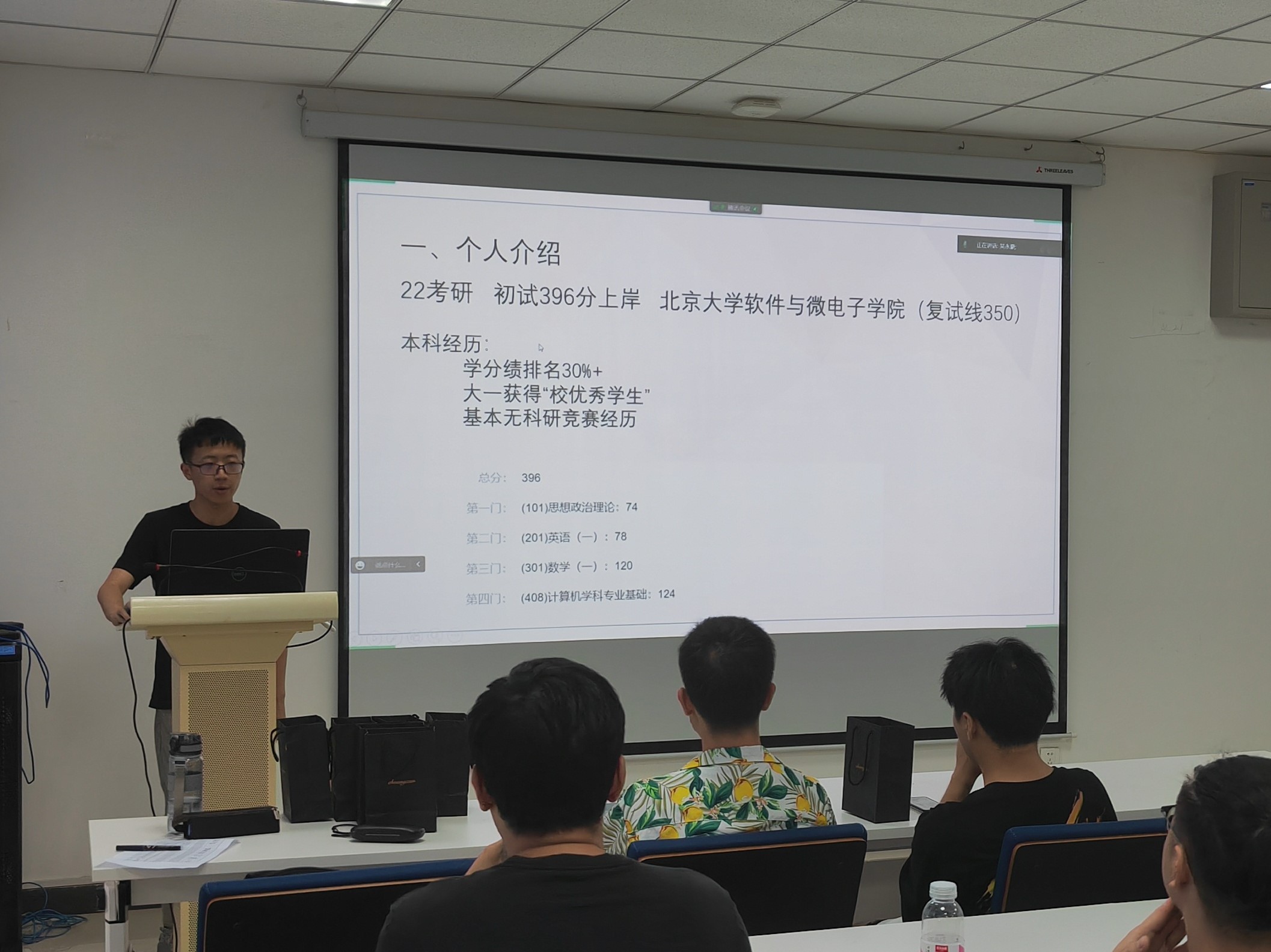 青年兴则国家兴,青年强则国家强。今年是党的二十大召开之年,也是中国共产主义青年团成立100周年。为充分发挥先进典型示范引领作用,本次分享会邀请到了六位2022届的优秀毕业生,旨在通过优秀毕业生的事迹分享和传授经验的方式,加深同学们关于保研、考研、留学和就业方向的认知。