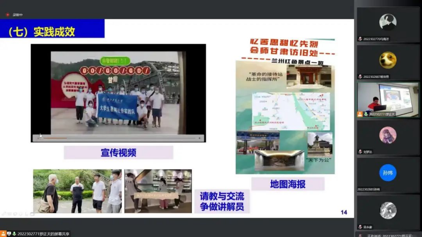 今年暑期,yl9193永利集团社会实践活动团队以昂扬的青春姿态,奔赴各地开展丰富多样的社会实践活动。为进一步总结2022年暑期社会实践工作,巩固实践成果,2022年10月3日下午,yl9193永利集团团委召开暑假社会实践分享会,会议以线上线下相结合的形式开展,学院党委副书记张龙,2022级本科生学生工作助理罗兴行及优秀实践队代表、优秀实践个人、新生班干部线下参会,学院团委书记、2022级本科生辅导员张记国,团委副书记、2021级本科生学生工作助理胡雅心及2021级、2022级本科生线上参会,会议由学院实践部部员罗正天主持。