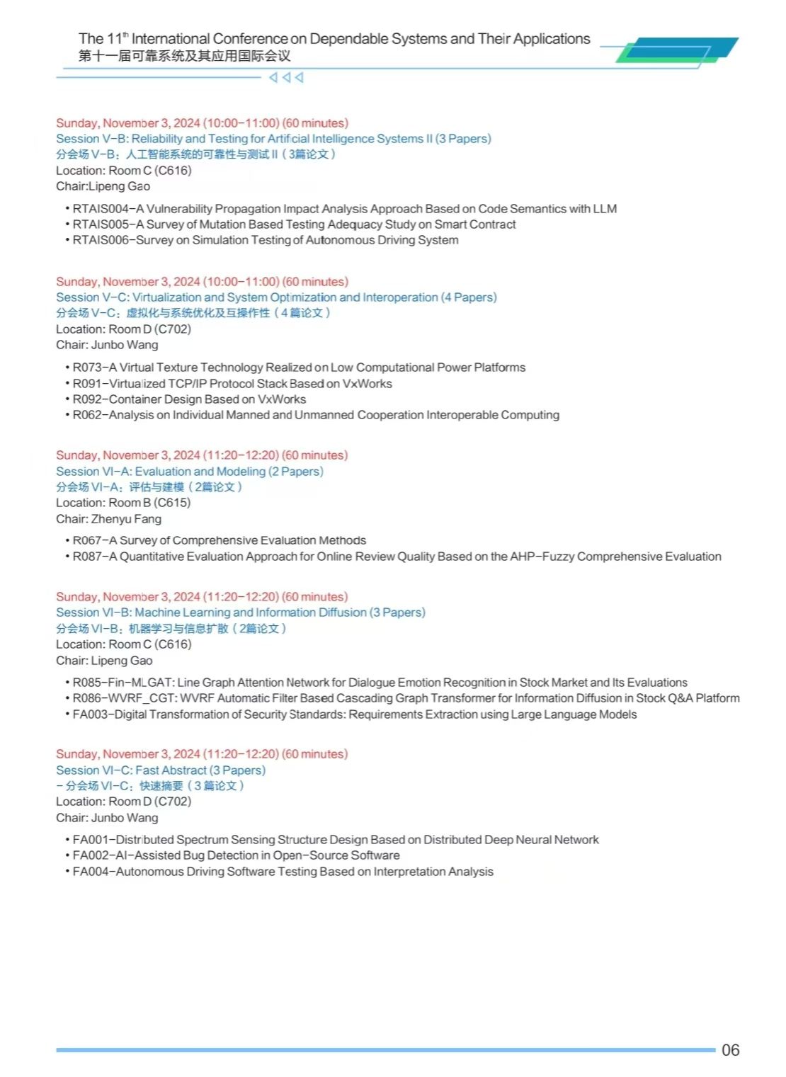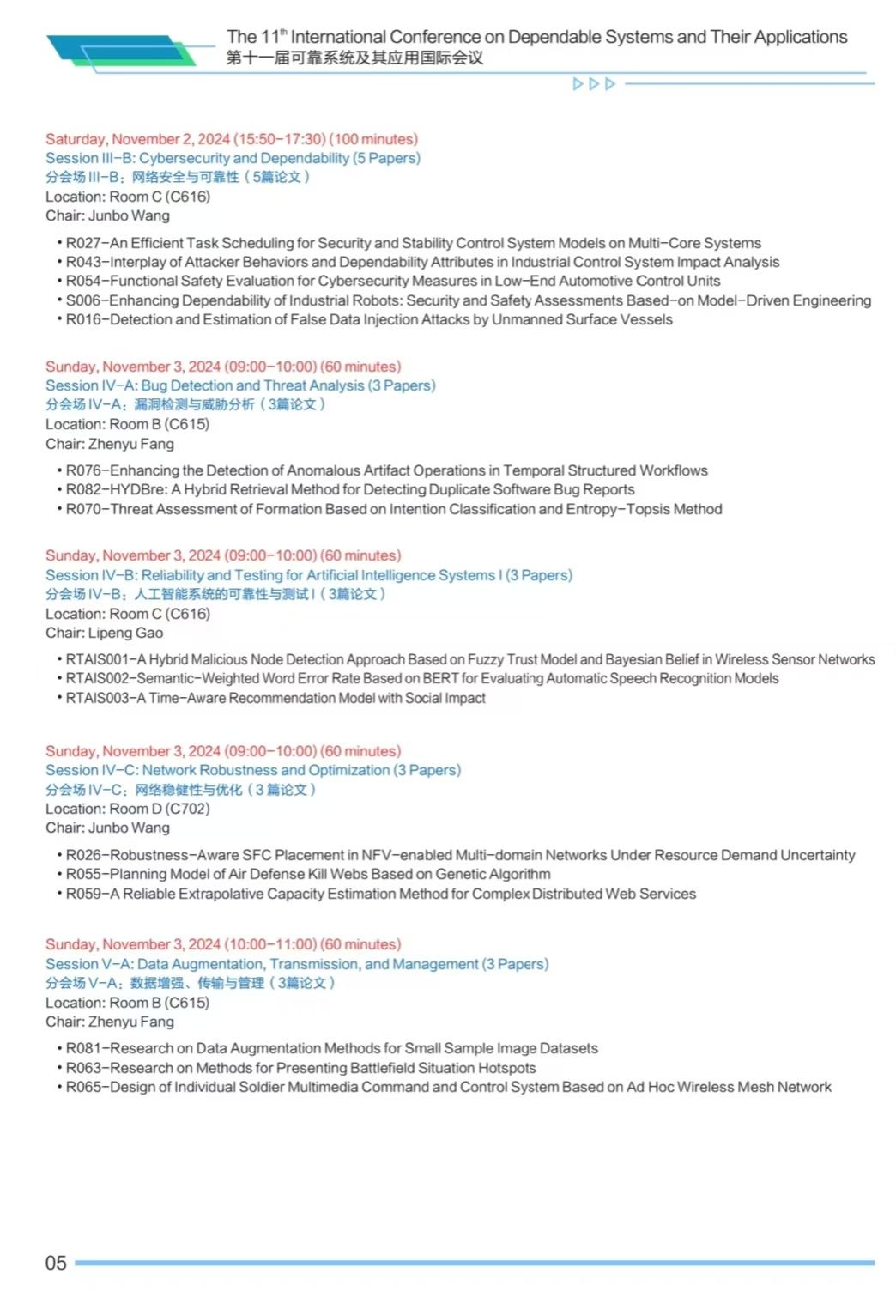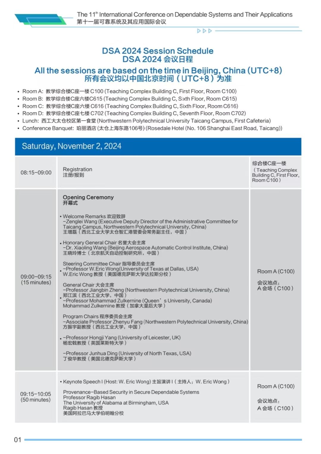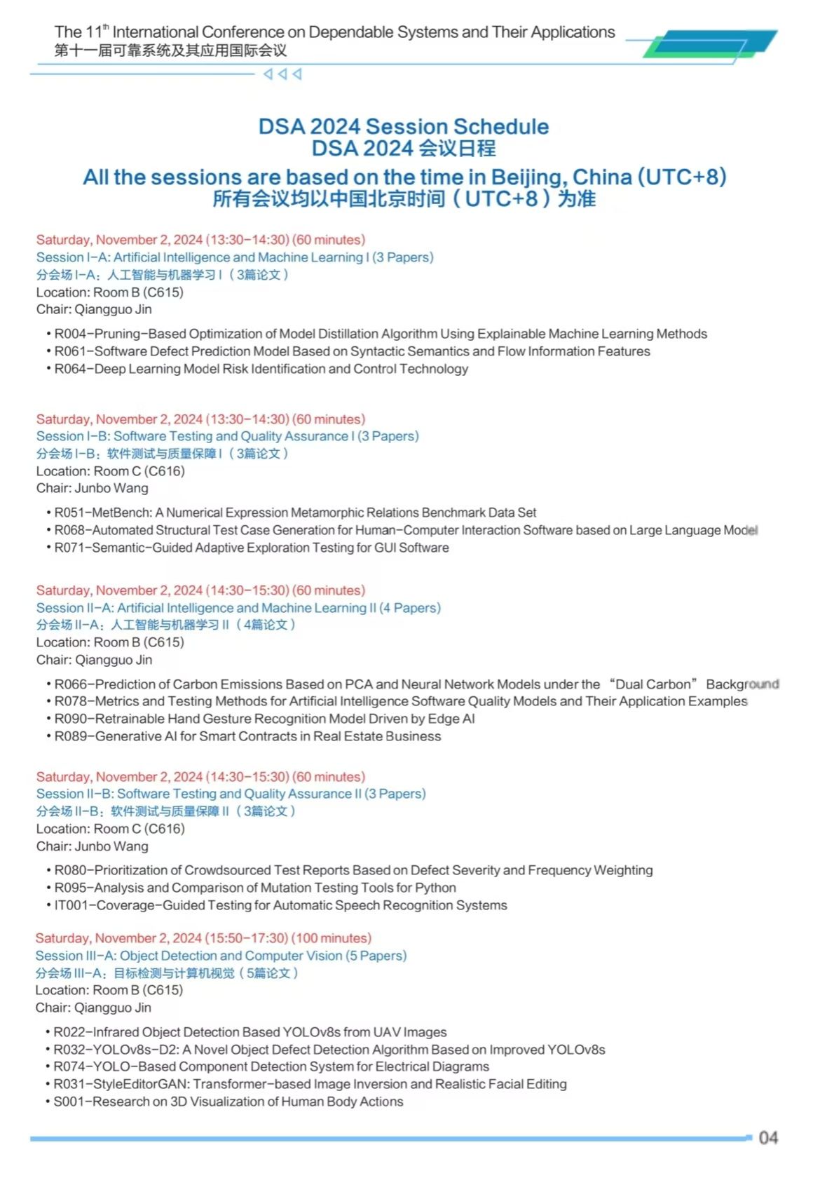 第十一届可靠系统及其应用国际会议(DSA 2024)将于2024年11月2日-3日在永利集团太仓智汇港举办,会议安排如下,欢迎各位专家学者参会交流。