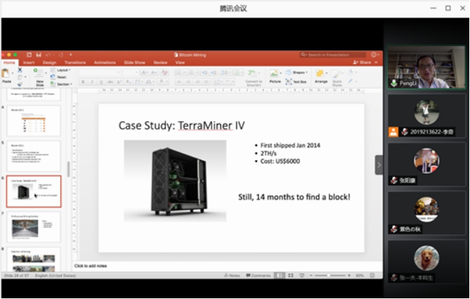 课堂上李鹏老师鼓励同学们积极提问,课堂互动频繁。尽管课堂采用非传统形式的线上授课,同学们都反映在听李老师上课的时候,就跟平时的课堂一样。希望同学们能够通过本次课程的学习,对区块链技术能够有更加深入的理解,也能够在日后为区块链的技术的发展增砖添瓦。
