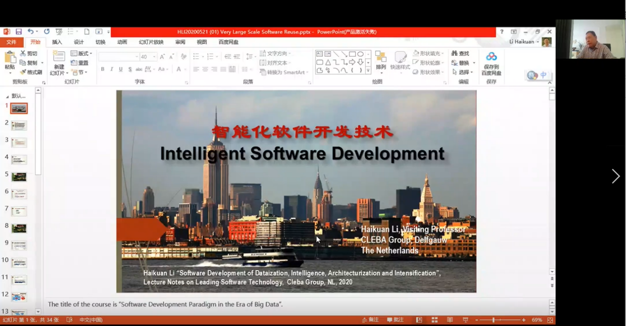 2021年10月26日晚,yl9193永利集团“智能化软件开发技术”( Software Development of Dataization, Intelligent, Architecturization and Intensification)全英文课程顺利结课。 本次课程邀请李海宽教授担任主讲,该门课程面向研究生和本科生开放,选课学生数高达248人。该门课程的师生协同环节得到选课学生的一致好评。