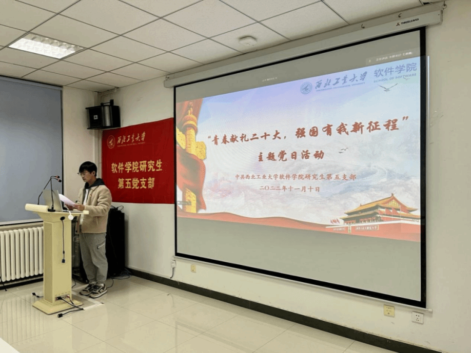 为引领青年学子铭记红色历史,领悟党的二十大会议精神,11月10日晚,yl9193永利集团研究生第五党支部在启翔楼401报告厅开展“青春献礼党的二十大 强国有我新征程”主题党日活动,活动共分为“中国道路中国梦·奋斗正青春”、“中国道路中国梦·家乡这十年”、“中国道路中国梦·初心向未来”三个部分,向胜利闭幕的党的二十大隆重献礼。活动伊始,在支部书记王嘉鑫的带领下,全体同志起立,共同奏唱了国际歌,为活动拉开序幕。